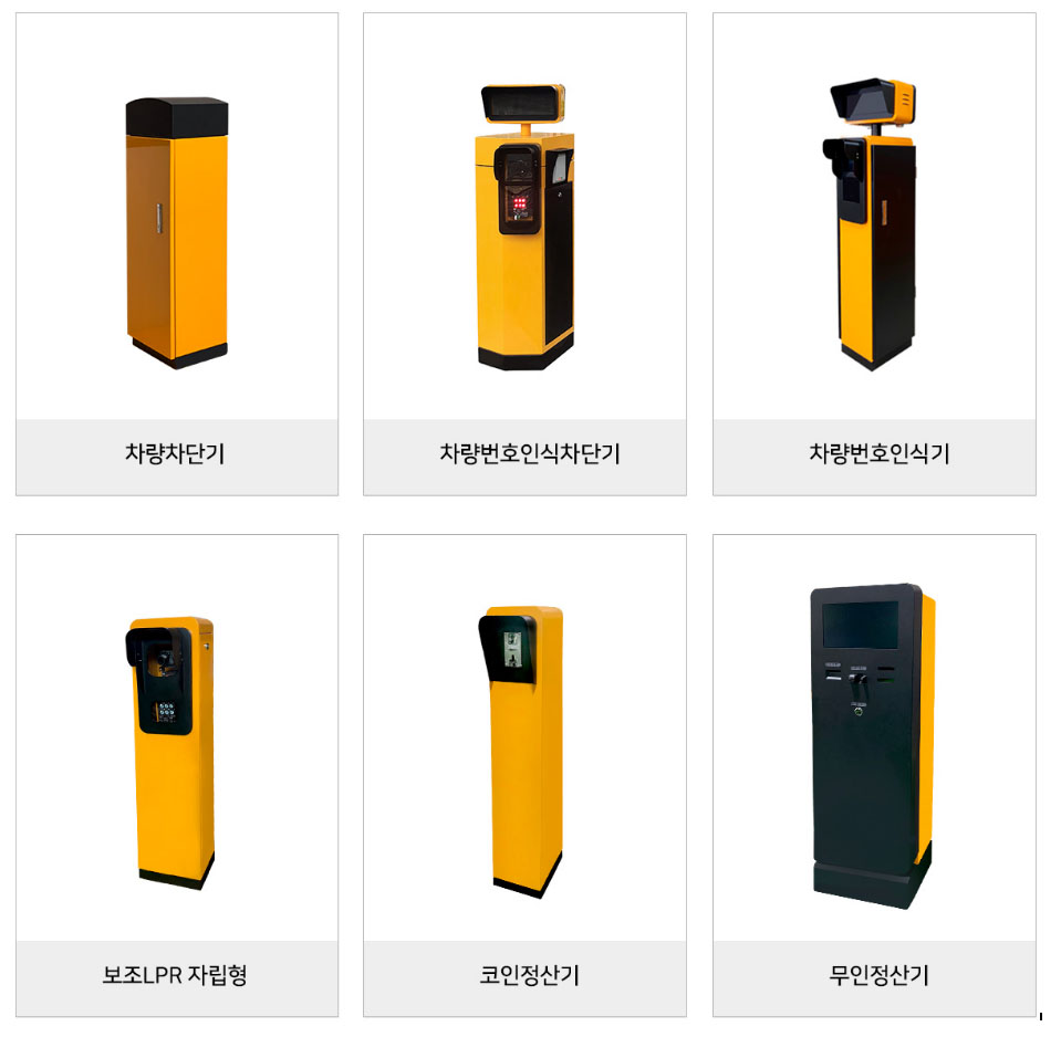 - 출차 시스템: 자동루프 출차, 요금정산 출차, 리모콘 출차, 주차권 출차, CCTV관제 출차(차량번호판인식), 스마트폰 출차(앱방식)